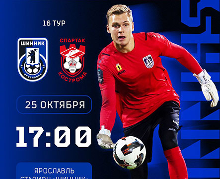 В субботу 25 октября «Шинник» принимает на своем поле команду "Спартак" (г.Кострома).
