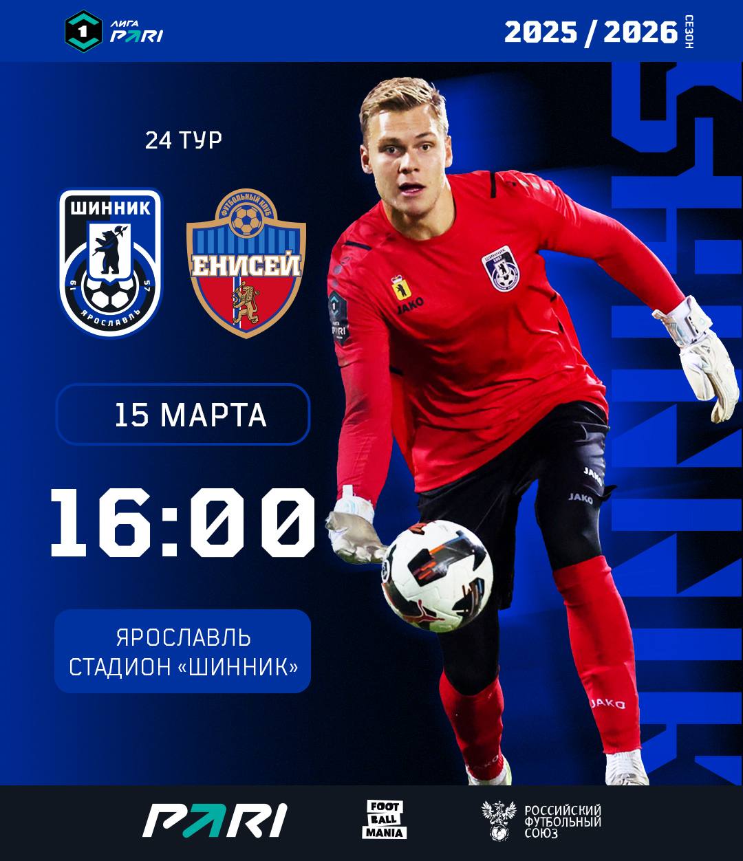 В воскресенье 15 марта «Шинник» в очередном домашнем матче весеннего этапа турнира Лиги Пари встречается с футбольным клубом "Енисей" (Красноярск)!