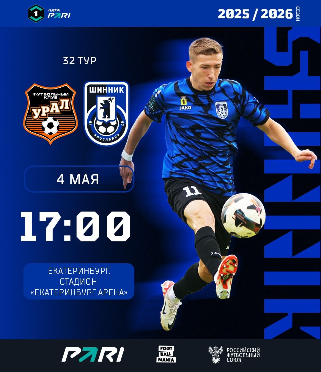 Очередной матч весеннего этапа Пари Первенства по футболу среди команд первой лиги сезона 2025-2026 годов "Шинник" проведет на выезде в понедельник 4 мая!